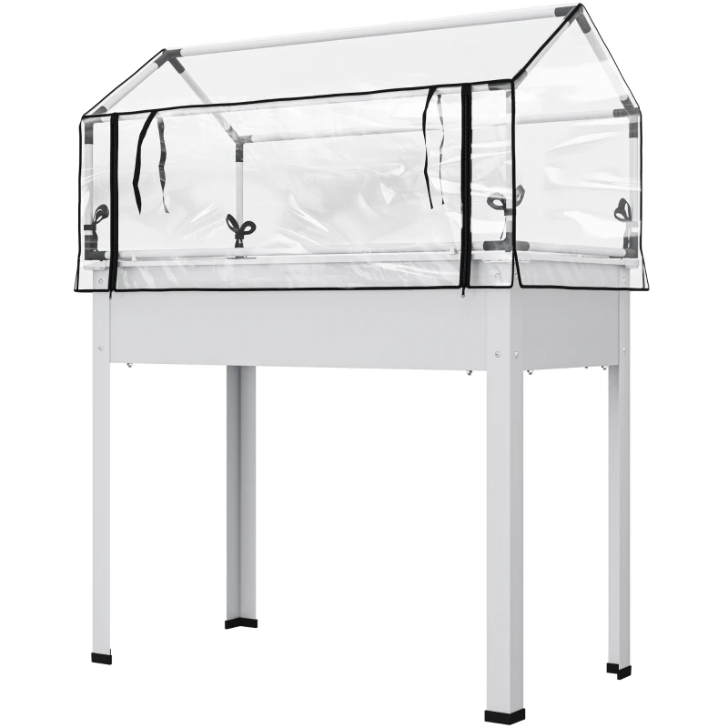 Home > Elevated Garden Box With Greenhouse Cover, Raised Garden Bed With Legs And Drainage Hole For Vegetables, White
