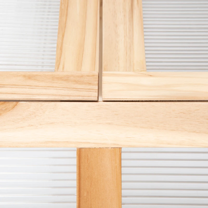 • - EFFECTIVE PROTECTION: Transparent polycarbonate boards help your plants fully absorb the sunlight and protect them from light wind and rain. This wooden greenhouse can also extend the growing season and offers an ideal temperature for your plants.