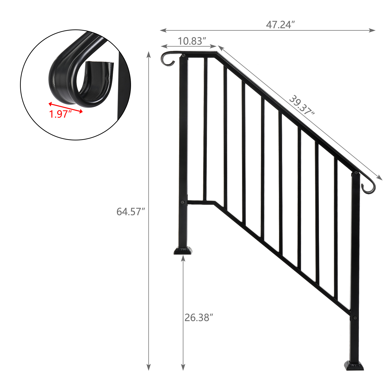 5. The handrail includes all necessary assembly and installation hardware.