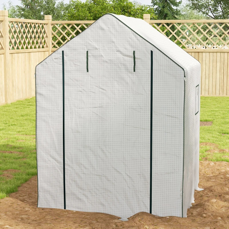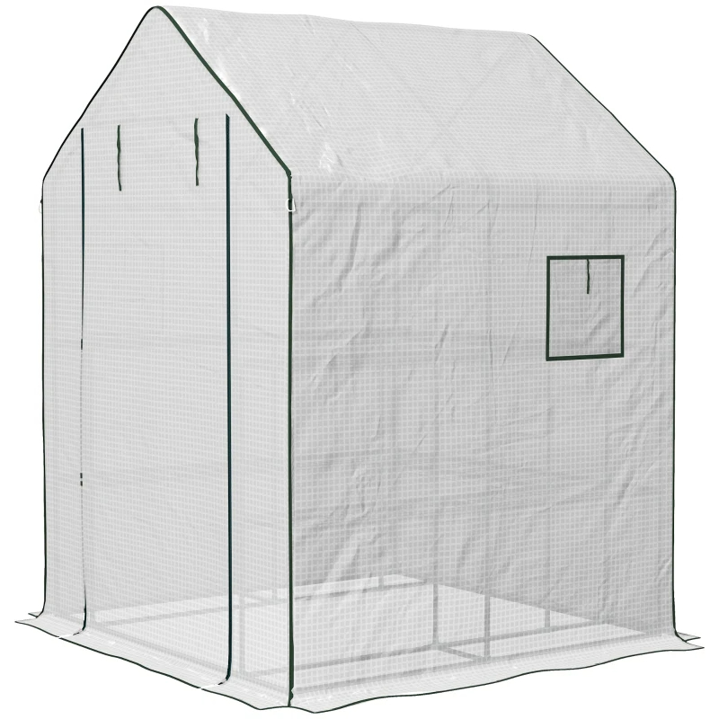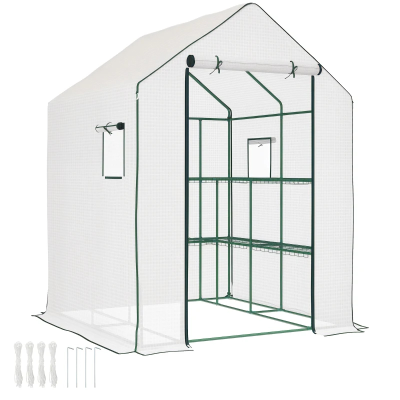 Home > Portable Greenhouse, Water UV Resistant Walk-In Small Outdoor Green House With 2 Tier U-Shaped Flower Rack Shelves, Roll Up Door & Windows, White