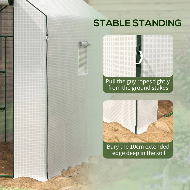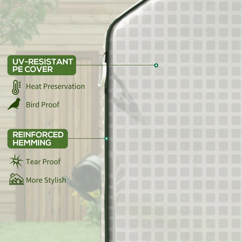 • - Outdoor Ready: Built with a powder-coated steel frame reinforced with horizontal support tubes, patio greenhouse gives durability and corrosion resistance. The airtight cover provides secure protection for lasting plant care - bury the edges in soil and anchor with ropes and spikes.